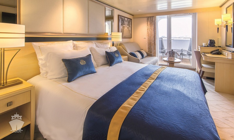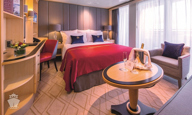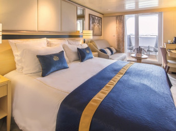 Velkoryse prostorná kajuta je vybavena stolem, posezením a velkou postelí a navíc prostorným balkonem se stolem a židlemi, kde můžete relaxovat na mořském vzduchu.
