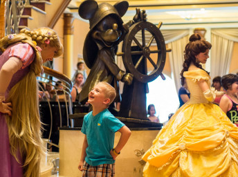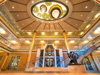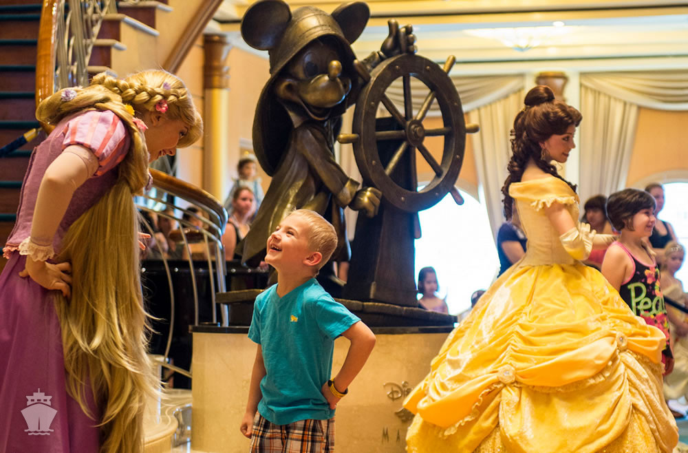 • Magic 's Atrium (centrální část lodi, přes 3 paluby, s bronzovou sochou "Helmsman Mickey")