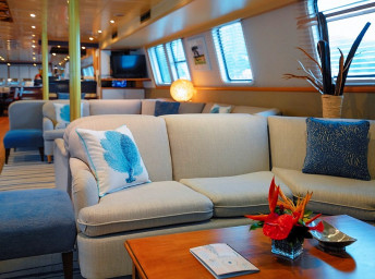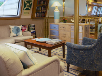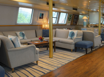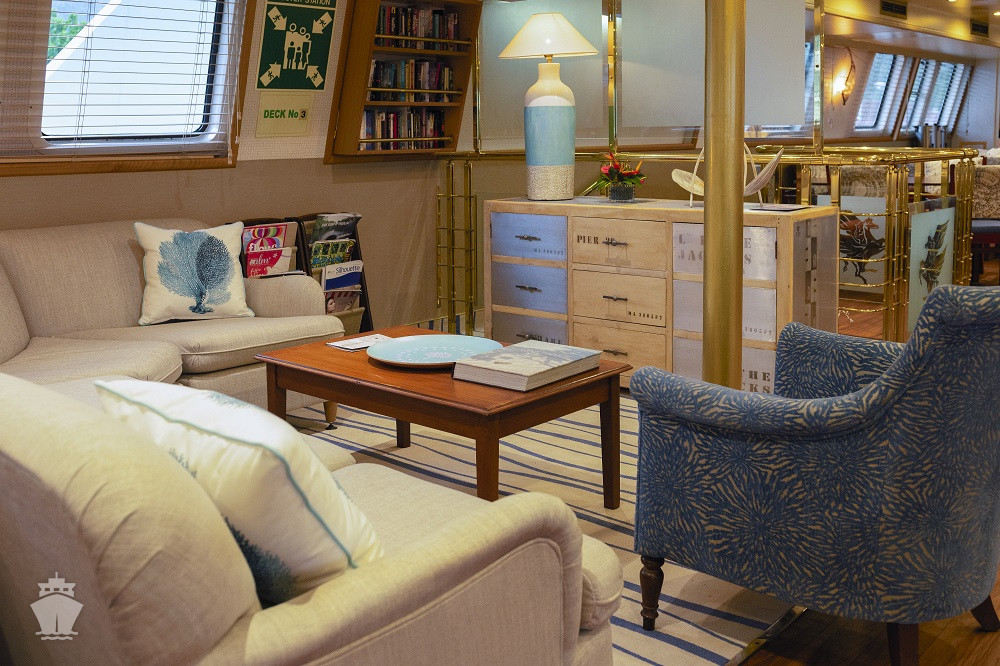 Na hlavní palubě se nachází komfortní salón, vybavený pohodlnými křesly a elegantní bar. Vedle salonu najdete knihovnu s výběrem knih v různých jazycích a k dispozici jsou i různé společenské hry.