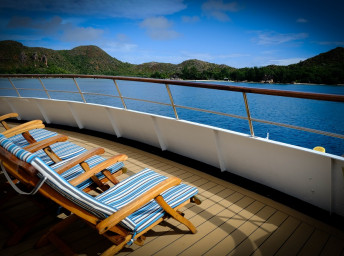 Nejvyšší paluba, Sun Deck, má rozlohu 240 m2. Vybavena lehátky a slunečníky, je ideální sluneční terasou na opalování. A v noci je to perfektní místo na pozorování noční oblohy.