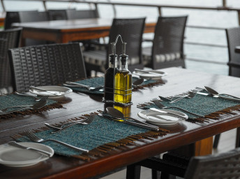 Na vnější palubě je také stíněná jídelní část s výhledem na moře, kde se odehrávají obědy formou bohatého bufetu. V průměru dvakrát týdně se koná barbecue přímo na palubě nebo na břehu.