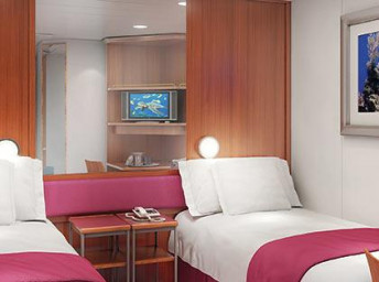 koupelna se sprchou a WC, 2 lůžka, v některých kajutách možnost přistýlek, toaletní stolek, úložné prostory, interaktivní TV, sejf, telefon, vysoušeč vlasů.