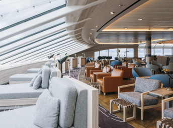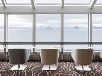 Na interiéry lodi byly použity převážně přírodní materiály jako kámen, dřevo a vlna. V kombinaci se severským dizajnem tak vnikly úžasné prostory, které pozitivně působí na každého cestujícího.