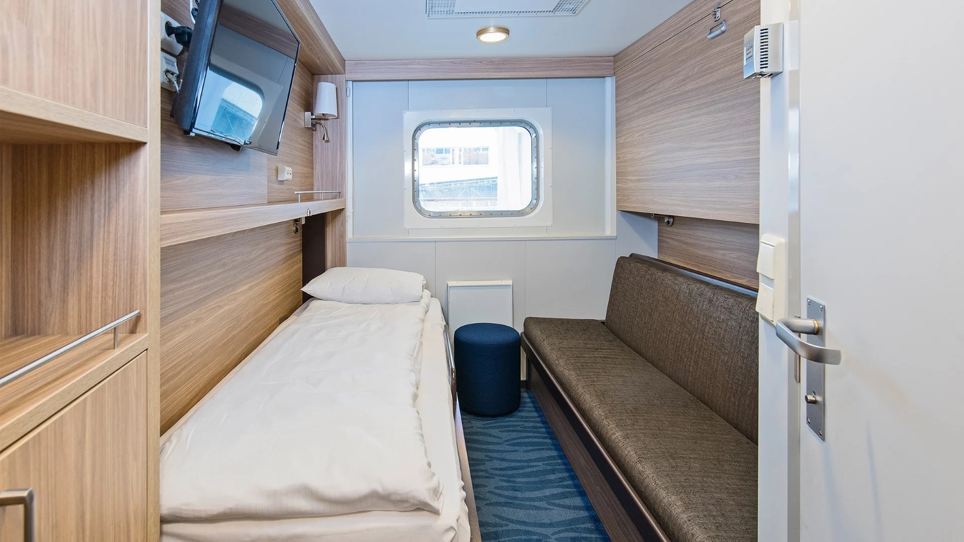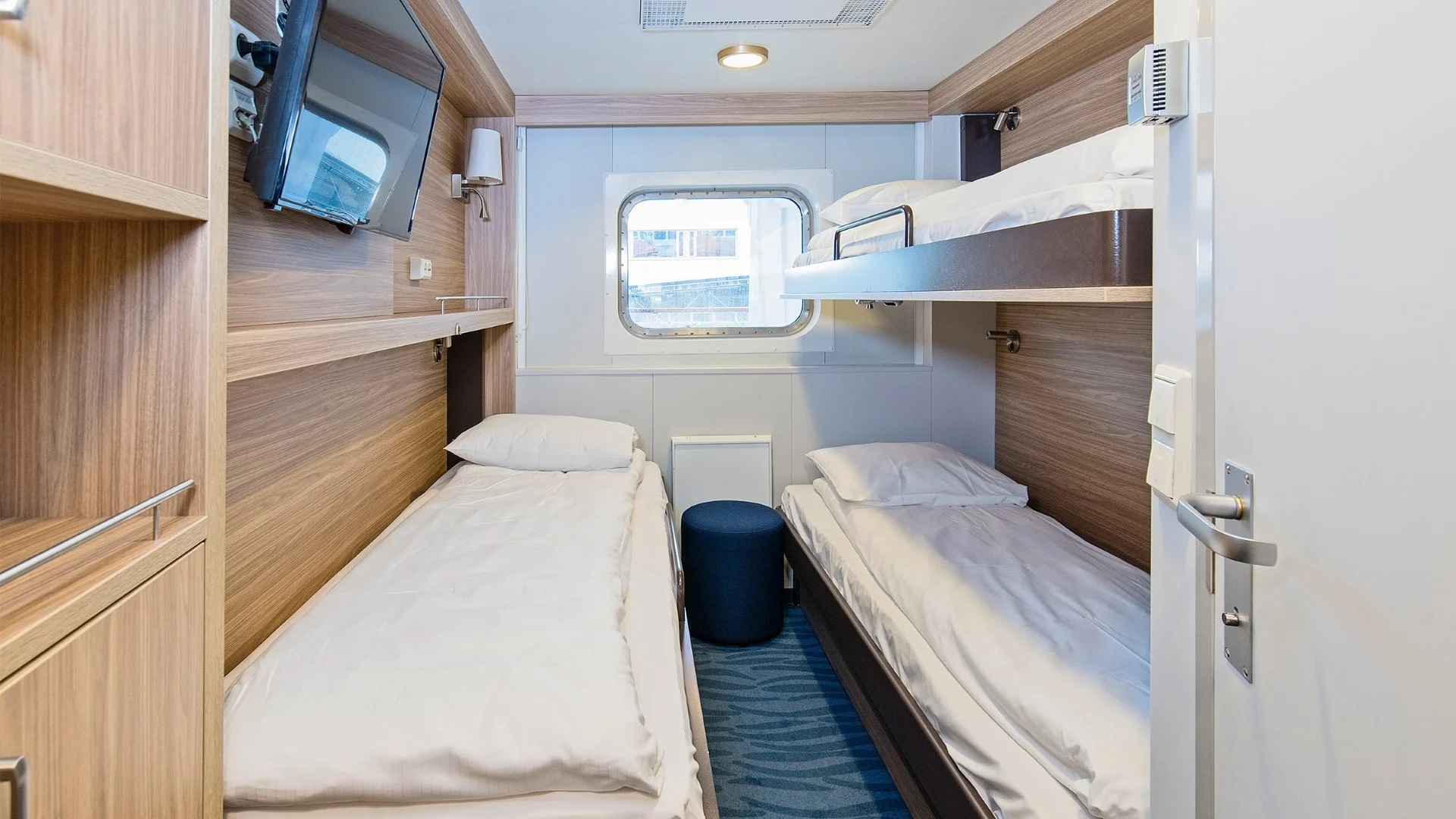 Kajuty se sprchou a WC jsou pohodlně zařízené a skýtají svým hostům dostatečné zázemí. K vybavení kajuty patří 2 lůžka, v některých kajutách jsou přistýlky ve formě sklopných lůžek.