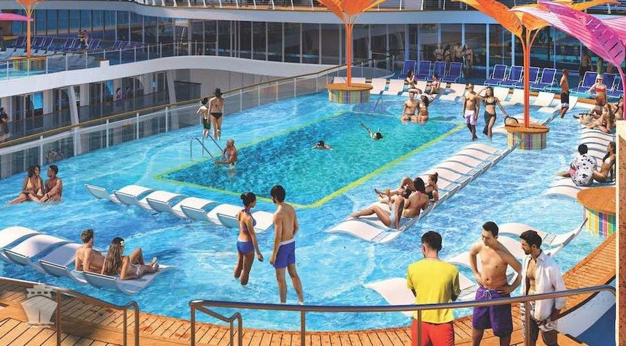 - Pool & Sports Zone: všechny vodní atrakce na jednom místě. Můžete tu chytat vlny na oblíbeném surf simulátoru FlowRider, osvěžit se v kterémkoliv z bazénů a vířivek, vznášet se na lanové dráze či se svézt na obří skluzace Ultimate Abyss. K dispozici jsou basketbalová a volejbalová či minigolf.