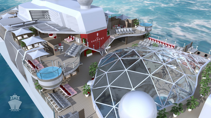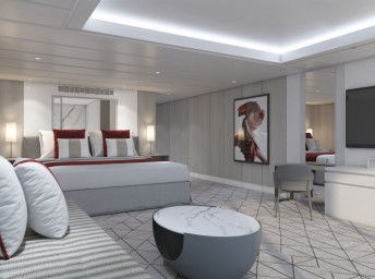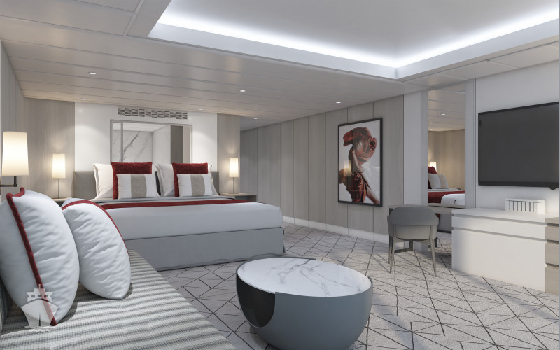 Orientační rozměry: kajuty 16 - 18 m², suite 28 - 240 m²