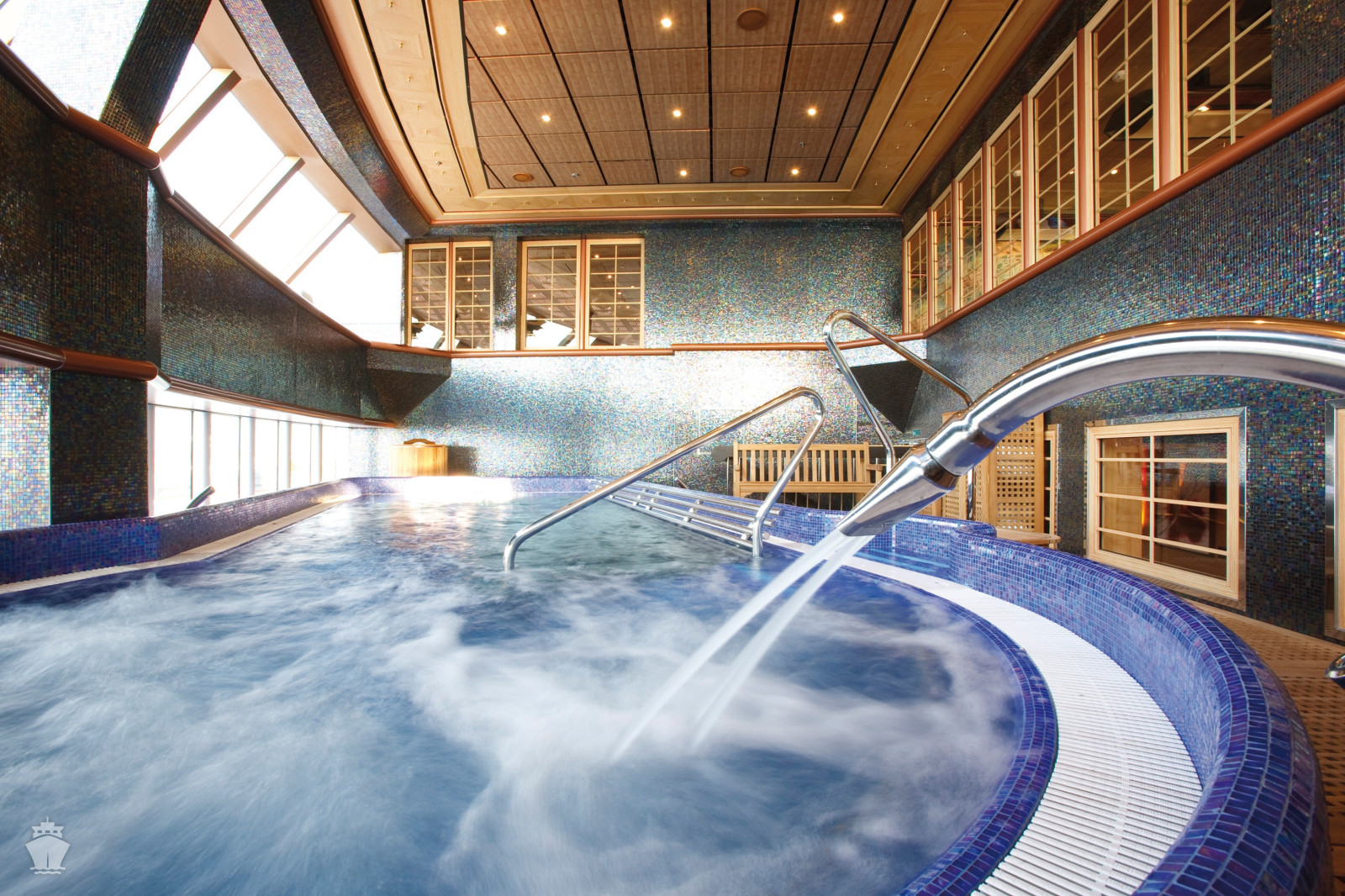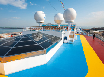 - bazény na horní palubě (jeden s posuvnou střechou)