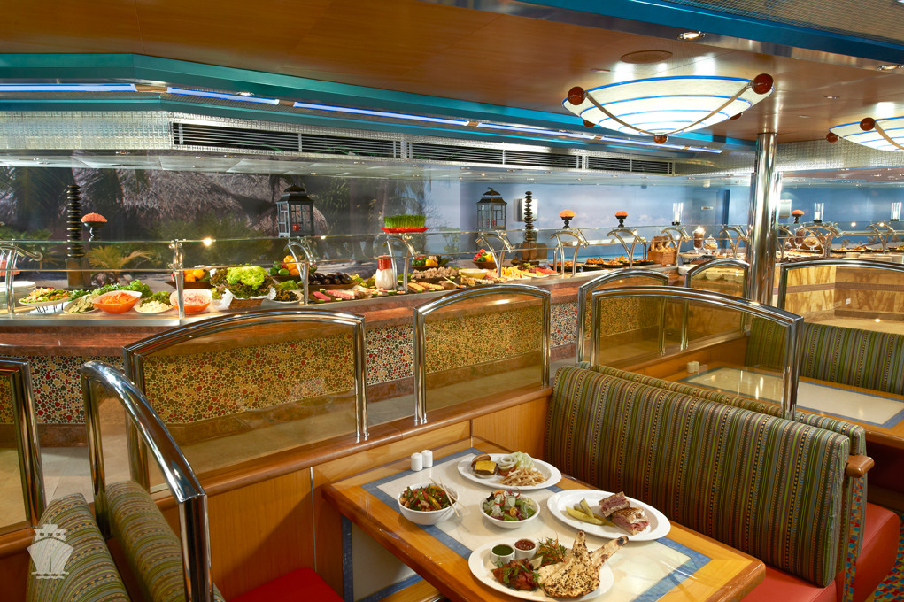 Večeře je podávána buď formou bufetu v Lido nebo formou á la carte v hlavní jídelně.