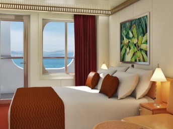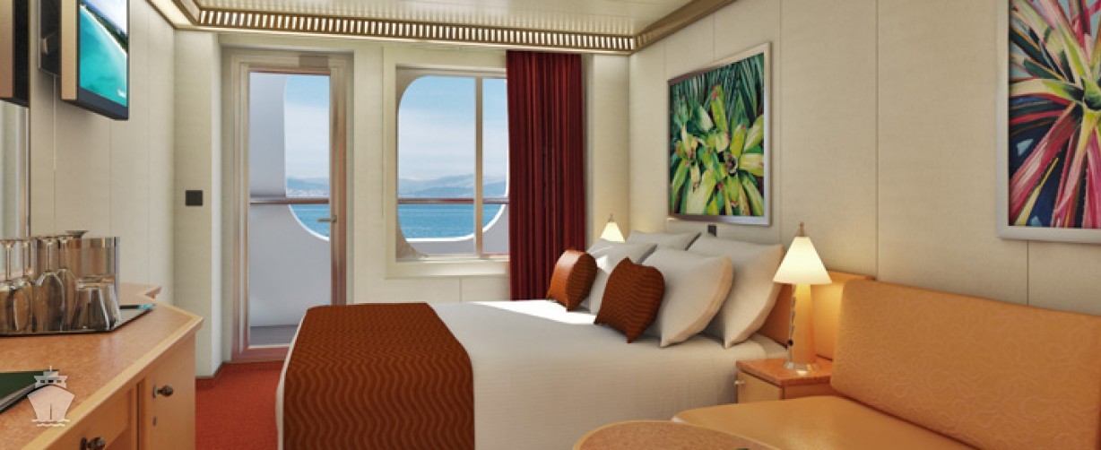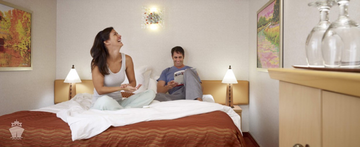 Vybavení ve všech kajutách: individuálně nastavitelná klimatizace, koupelna se sprchou, postele (dají se spojit do manželské), TV, telefon, fén, sejf, minibar, župany a plážové osušky k použití během plavby. 24 hodinová kajutová osobní služba.