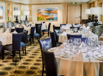 Hlavní restaurace flotily umožňují vybrané stravování a pestrost mezinárodních druhů kuchyně ve velkolepém prostředí. Méně formální alternativou na večer jsou restaurace Lido, kde najdete na objednávku čerstvě vyrobené sushi, pokrmy z woku, těstoviny, pizzu, kari, pečené maso, bohatý výběr zeleniny, plněné pečené brambory a zákusky. AquaSpa Café podává lehké a zdravé pokrmy po celý den. Pozdě večer číšníci v bílých rukavičkách podávají v salonech lodě malé pochoutky, jako mini beef wellingtonky nebo křupavou tempuru.