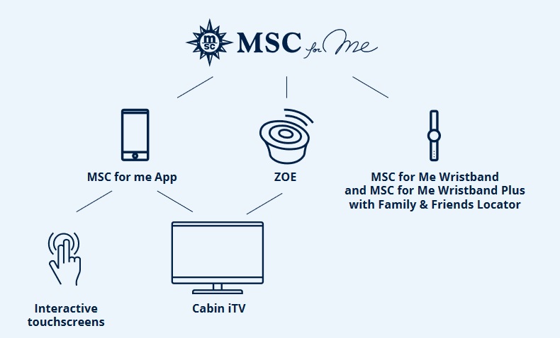 Interaktivní technologie náramku (MSC for Me Wristband) naviguje, hýčká, překvapuje i spojuje hosty a posádku. Snadno nositelné zařízení zařídí pomocí technologie NFC vše jako palubní karta Cruise Card. Náramek MSC for Me Wristband Plus má další funkci - Family & Friends Locator. V době pandemie slouží také pro trasování rizikových kontaktů na palubě lodi.
