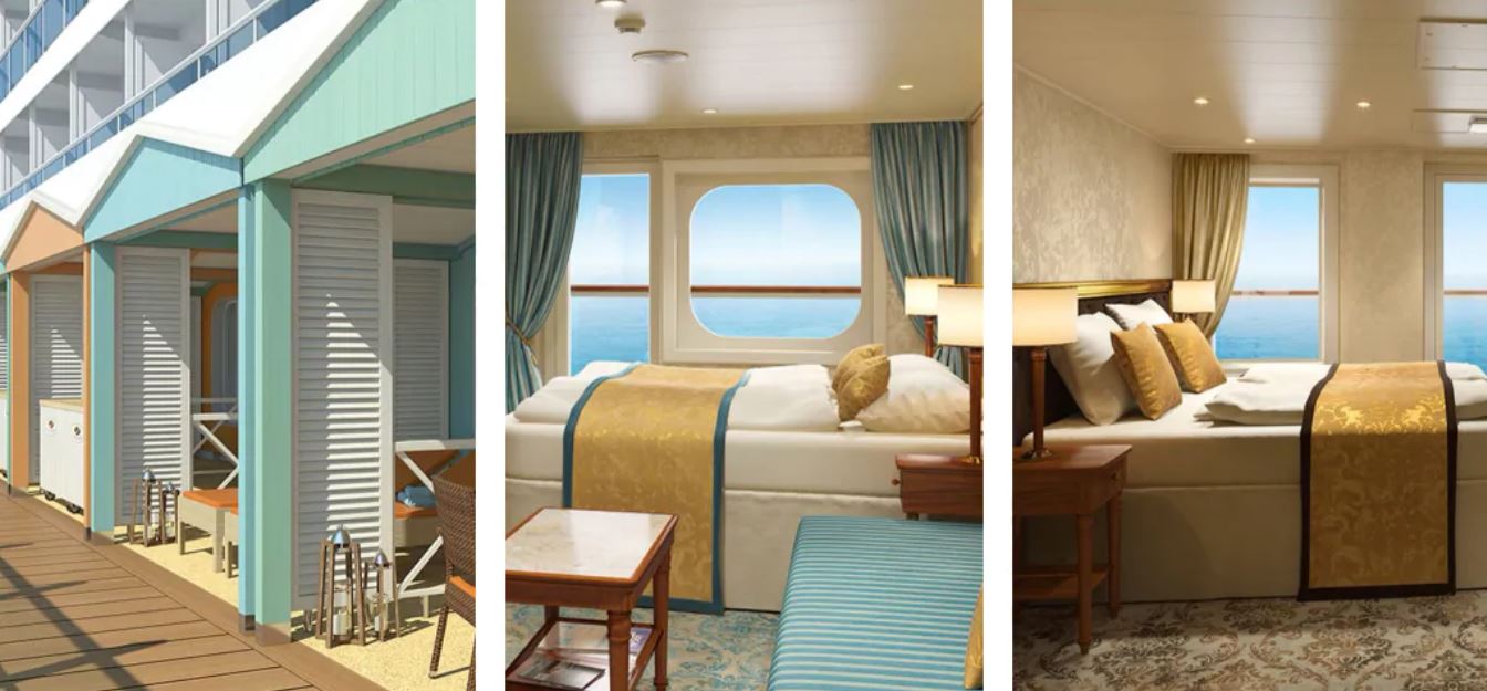 Pohodlné kajuty splňují všechny nároky na moderní ubytování hotelového typu. Tato loď poskytuje i kajuty s vlastní terasou, ze které můžete vyjít přímo na otevřenou palubu lodi. Široká nabídka mnoha typů kajut umožňuje hostů vybrat si ubytování na lodi posle svých nároků i dovolenkového rozpočtu.