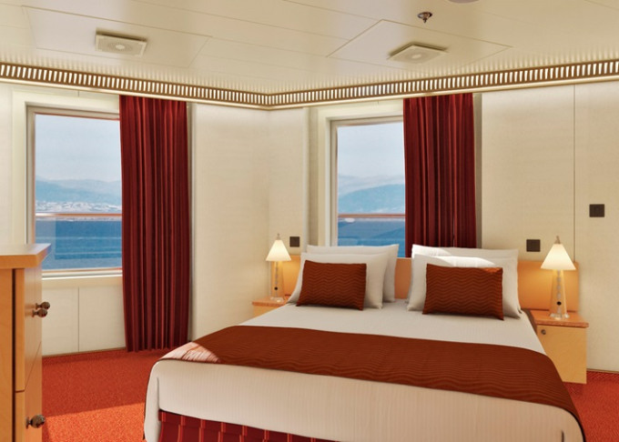 Základní vybavení všech kajut: koupelna se sprchou a WC, TV s plochou obrazovkou, telefon, elektrická zásuvka 110 AC, regulovatelná klimatizace, postele Carnival Comfort, vysoušeč vlasů, trezor.