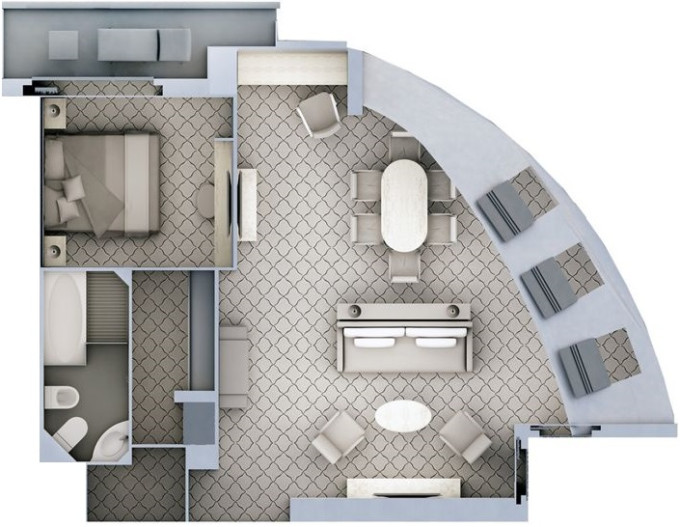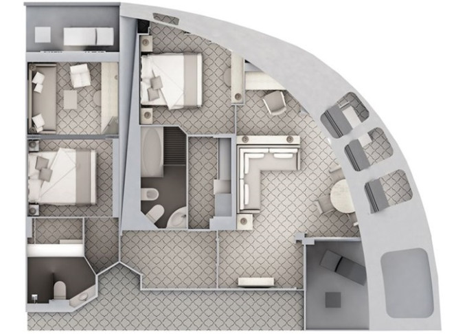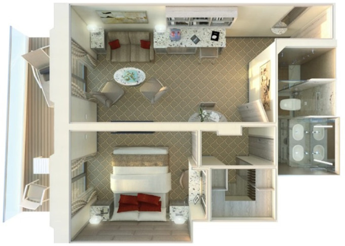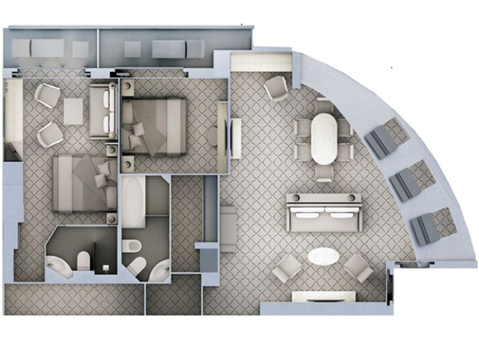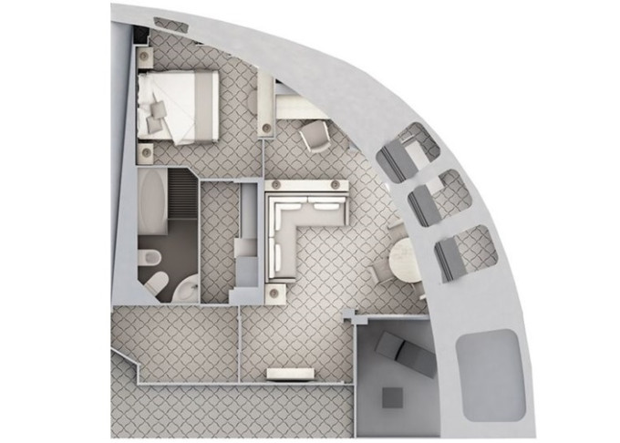 | O1 - Owner's Suite 1 55 m² (včetně balkonu). Oddělená obývací část, jídelna, ložnice. | 1 908 281 Kč 954 141 Kč za osobu | ||