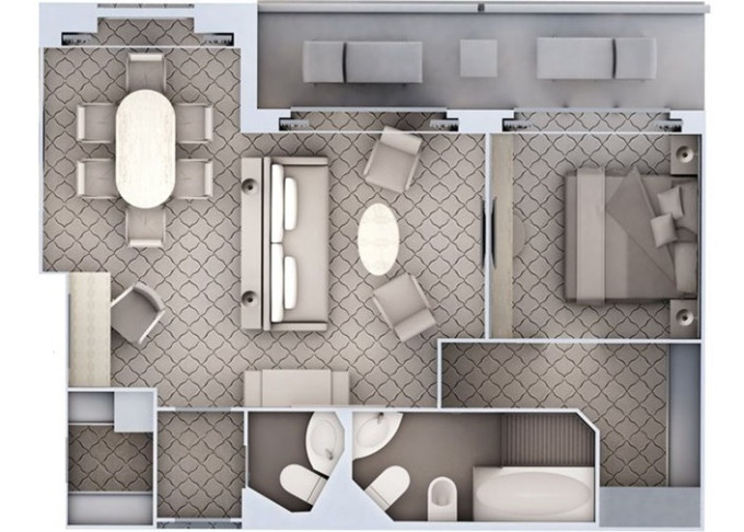| R1 - Royal Suite 1 69 m² (včetně balkona). Obývacia časť s jedálňou, oddělená ložnice. | 1 588 569 Kč 1 588 569 Kč za osobu | ||