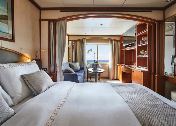 | VI - Vista Suite s oknem 22-30 m². Panoramatické neotevíratelné okno. Ložnice s oddělitelnou obývací částí. | 666 899 Kč 666 899 Kč za osobu | ||