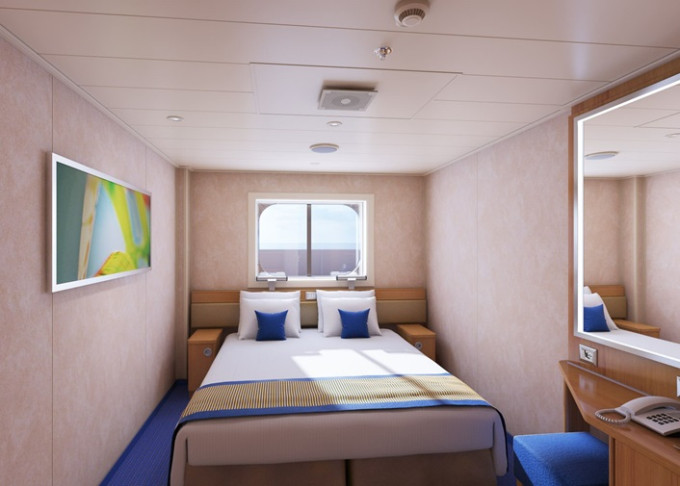 Vybavení všech kabin: koupelna s WC, telefon, zástrčky 110 AC, nastavitelná vzduchová klimatizace, postel Carnival Comfort, vysoušeč vlasů, bezpečnostní schránka, skříň, stolek, TV s plochou obrazovkou a mini chladnička (bez náplně).