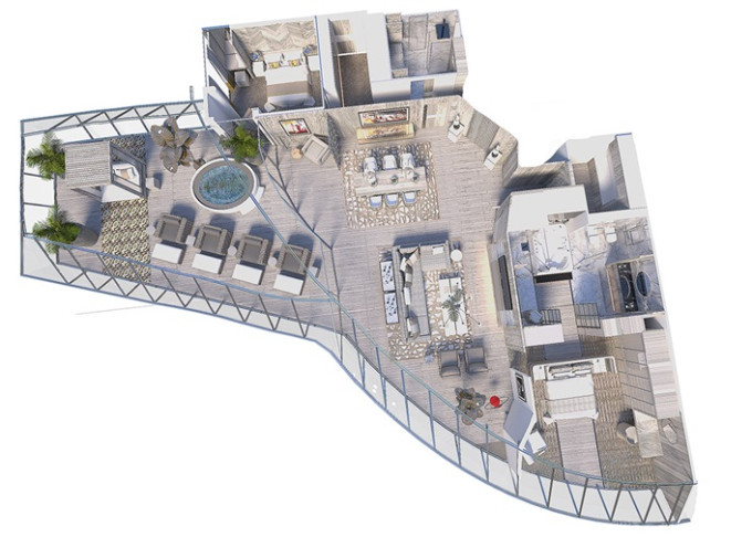 | EV - Edge Villa s balkonem 69 m² + terasa s vířivkou 20 m². 2podlažní apartmán. Max 4 osoby. 15/16. paluba. Výhody Suite. | 759 541 Kč 759 541 Kč za osobu |