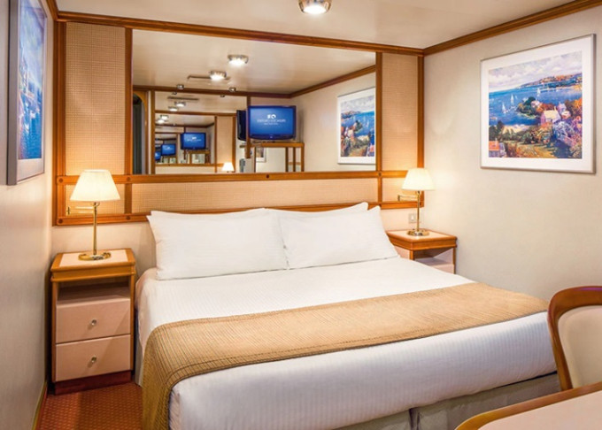 | OV - Vnější kajuta / omezený výhled 16 m². Neotevíratelné okno s omezeným výhledem. Max 2-4 osoby (2 horní lôžka). | 79 828 Kč 39 914 Kč za osobu |