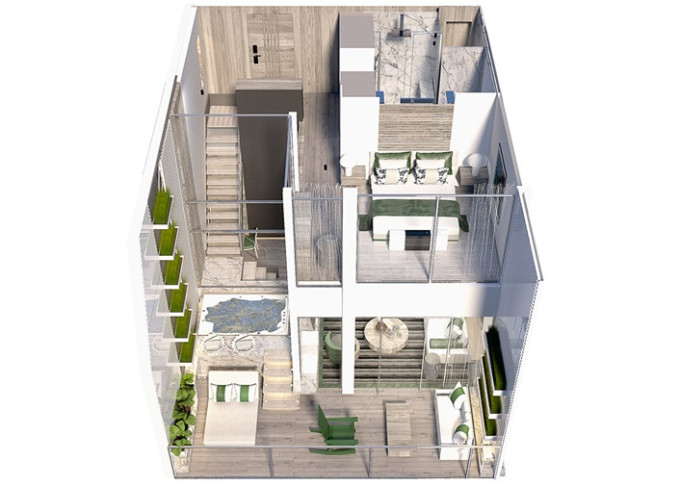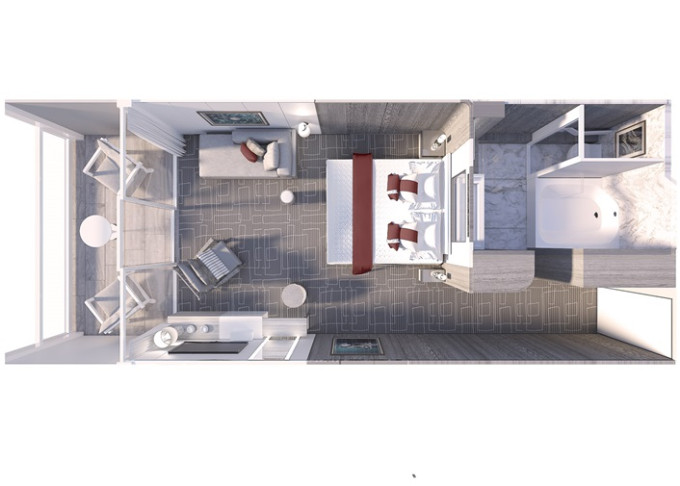 | EV - Edge Villa s balkonem 69 m² + terasa s vířivkou 19 m². 2poschoďový apartmán. Max 4 osoby. 15. paluba. Výhody Suite. | 417 624 Kč 208 812 Kč za osobu | ||