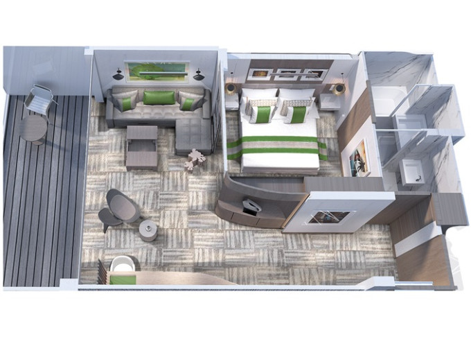 | CS - Celebrity Suite 37 m² + balkon 9 m². 11/12. paluba. Max 4 osoby. Výhody Suite. | 349 785 Kč 87 446 Kč za osobu | ||