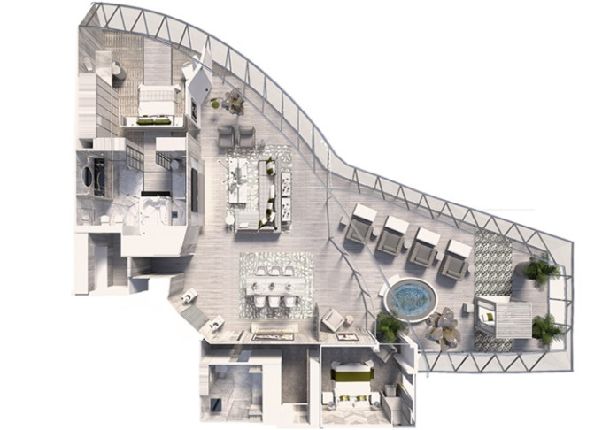 | IC - Iconic Suite s balkonem 176 m² + terasa s vířivkou a cabanou 64 m². 2 ložnice, 2 koupelny (1 s vířivkou).12. paluba. Max 6 osôb. Výhody Suite. | 925 816 Kč 462 908 Kč za osobu | ||
