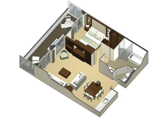 | S1 - Sky Suite 28 m² + balkon 7 m². 6. až 12. paluba. Max 4 osoby. Výhody Suite. | 100 285 Kč 100 285 Kč za osobu |