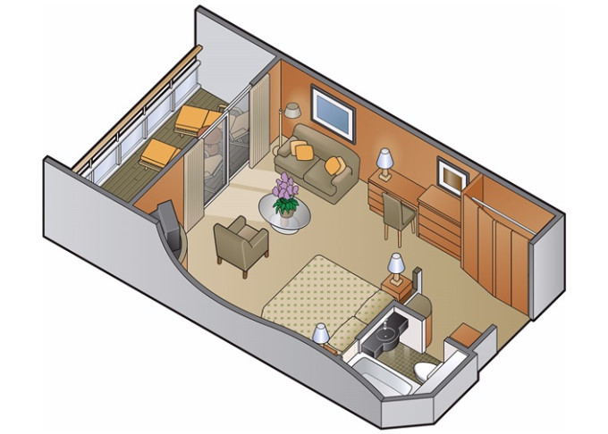 | C1 - Kajuta s balkonem Concierge Class 18 m² + balkon 3,5 m². 6. až 9. paluba. Max 2-3 osoby. Výhody Concierge Class. | 171 695 Kč 85 848 Kč za osobu |