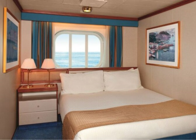 | OZ - Vnější kajuta / omezený výhled 16 m². Neotevíratelné okno s omezeným výhledem. Max 2 osoby. | 59 746 Kč 29 873 Kč za osobu | ||