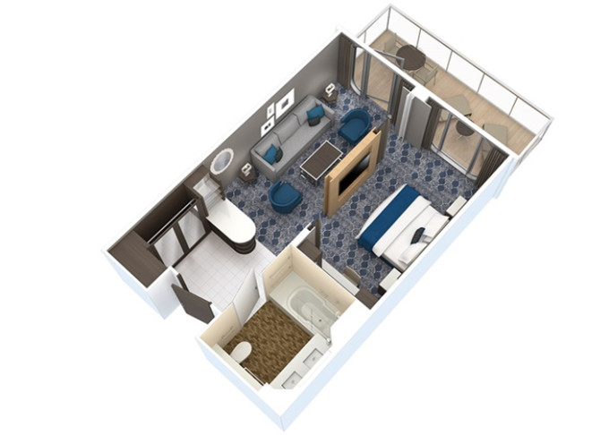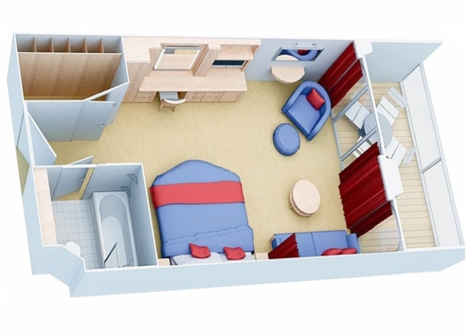 | 1J - Kajuta s balkonem Central Park View 17 m² / balkon 5 m² (výhled na Central Park). 10. až 14. paluba. Max 2-4 osoby. | 119 643 Kč 39 881 Kč za osobu | ||
