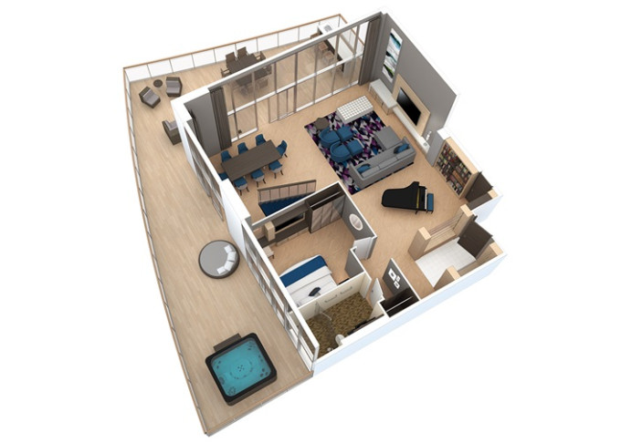 | RL - Royal Loft Suite s balkonem 141 m² / balkon s vířivkou 78 m². 2-podlažní apartmán. Výhody Royal Suite Class. 17. paluba. Max 6 osob. | 599 388 Kč 599 388 Kč za osobu |