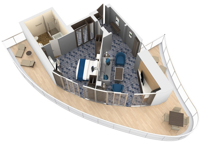 | OS - Owner’s Suite s balkonem 51 m² / balkon 22 m². Výhody Royal Suite Class. 10/11/14. paluba. Max 4 osoby. | 325 091 Kč 325 091 Kč za osobu |