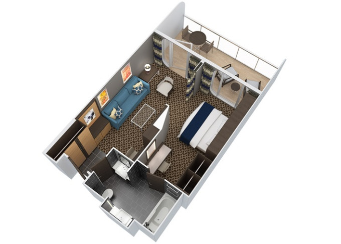 | J1 - Junior Suite s velkým balkonem 25 m² / balkon 15 m². Výhody Royal Suite Class. 6. až 10. paluba. Max 4 osoby. | 124 613 Kč 41 538 Kč za osobu | ||