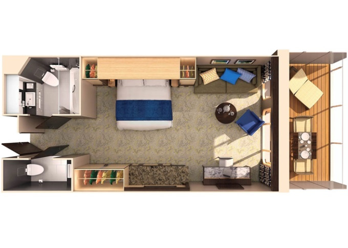 | J1 - Junior Suite s velkým balkonem 25 m² / balkon 15 m². Výhody Royal Suite Class. 6. až 10. paluba. Max 4 osoby. | 103 757 Kč 51 878 Kč za osobu | ||