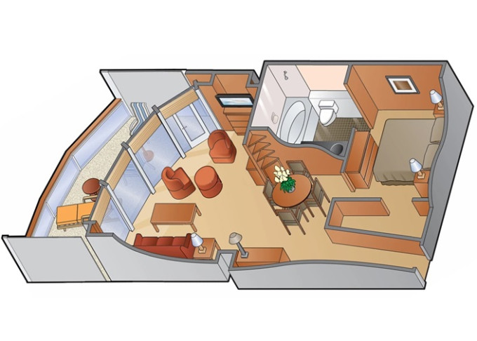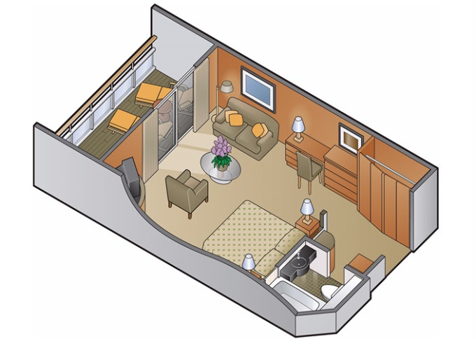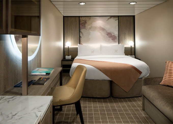 Základní vybavení všech kajut: koupelna s WC, fén, toaletní potřeby; lůžka, dostatek úložných prostor, toaletka se zrcadlem, individuálně nastavitelná klimatizace, TV, župany, trezor, minibar.