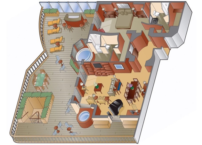 Orientační rozměry: kajuty 16 - 18 m², suite 28 - 120 m².