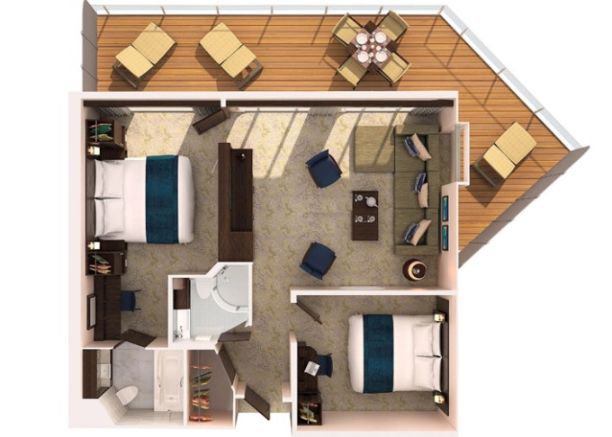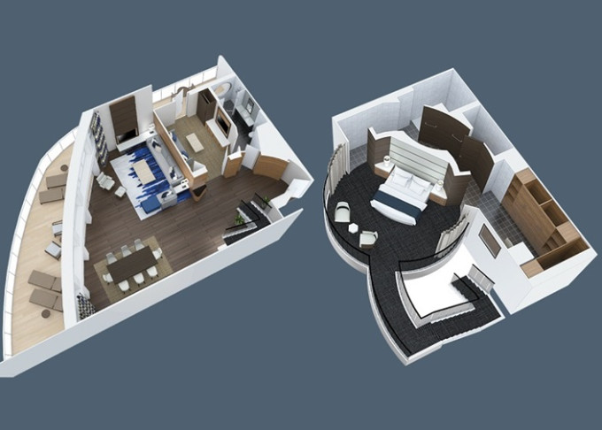 - Prostorné kajuty pro skupiny – ultra prostorné pokoje s výhledem na oceán až po špičková Villa Suite se čtyřmi ložnicemi.
