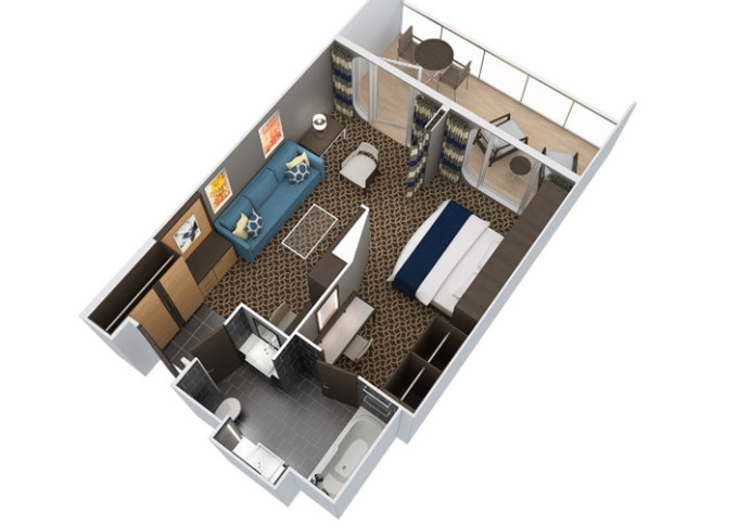 | J3 - Junior Suite s balkonem 25 m² / balkon 7,5 m². Výhody Royal Suite Class. 8/9/10. paluba. Max 4 osoby. | 47 907 Kč 47 907 Kč za osobu | ||