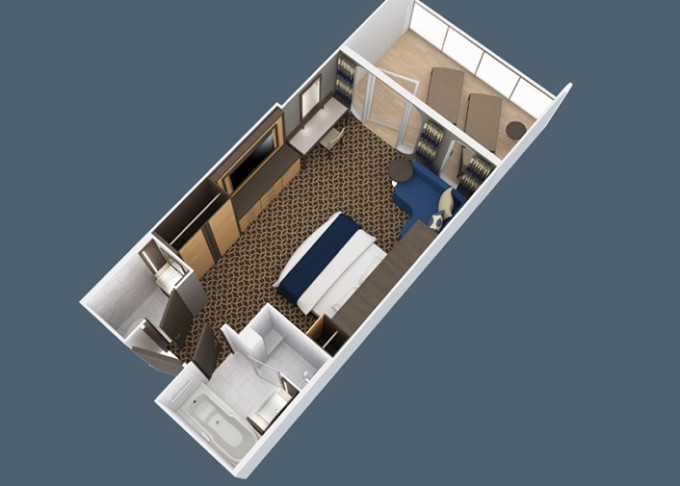 | 3U - Vnitřní kajuta s virtuálním balkonem 15 m². Obrazovka velkosti balkonových dverí s promítaným výhledem. 7. až 12. paluba. Max 2-4 osoby. | 26 476 Kč 6 619 Kč za osobu |