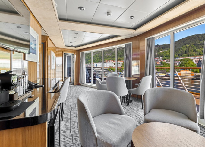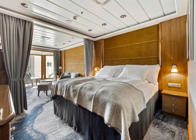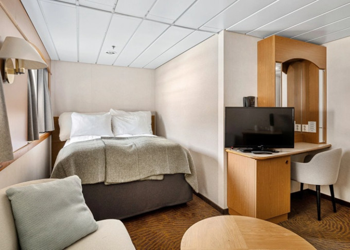 | QJ - Vnější kajuta Arctic Superior 16 - 17 m². Neotevíratelné okno s omezeným výhledem. Oddělené postele, obývací část. Tv, varná konvice, minibar. Max 2 osoby. | 168 099 Kč 84 049 Kč za osobu | ||