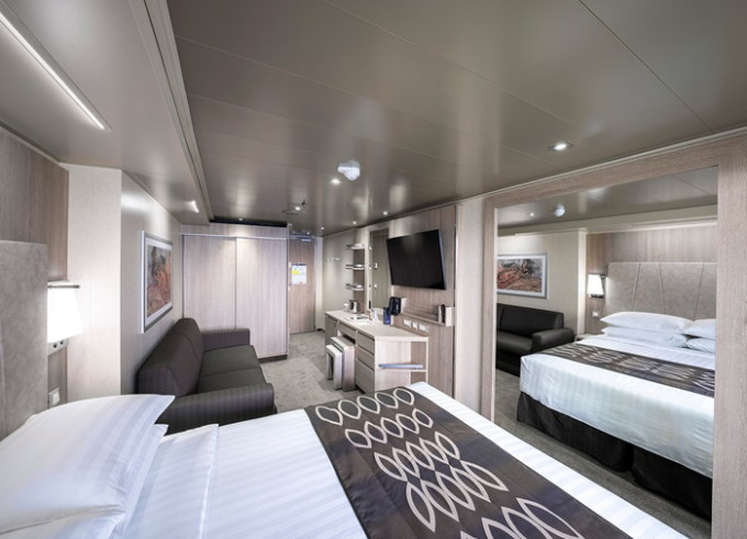 - ubytování v plně vybavené kajutě: vlastní koupelna se sprchou a WC, interaktivní TV, telefon, trezor, vysoušeč vlasů, regulovatelná klimatizace, minibar (za poplatek), Wi-fi (za poplatek)