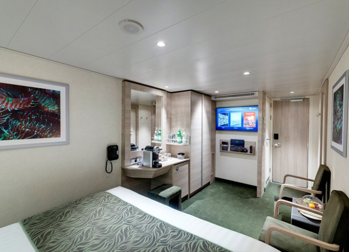 - ubytování v plně vybavené kajutě: vlastní koupelna se sprchou a WC, interaktivní TV, telefon, trezor, vysoušeč vlasů, regulovatelná klimatizace, minibar (za poplatek), Wi-fi (za poplatek)