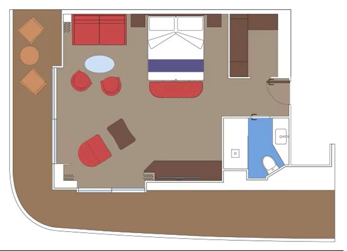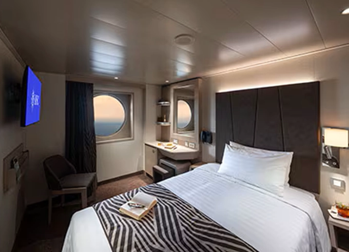 - ubytování v plně vybavené kajutě: vlastní koupelna se sprchou a WC, interaktivní TV, telefon, trezor, vysoušeč vlasů, regulovatelná klimatizace, minibar (za poplatek), Wi-fi (za poplatek)
