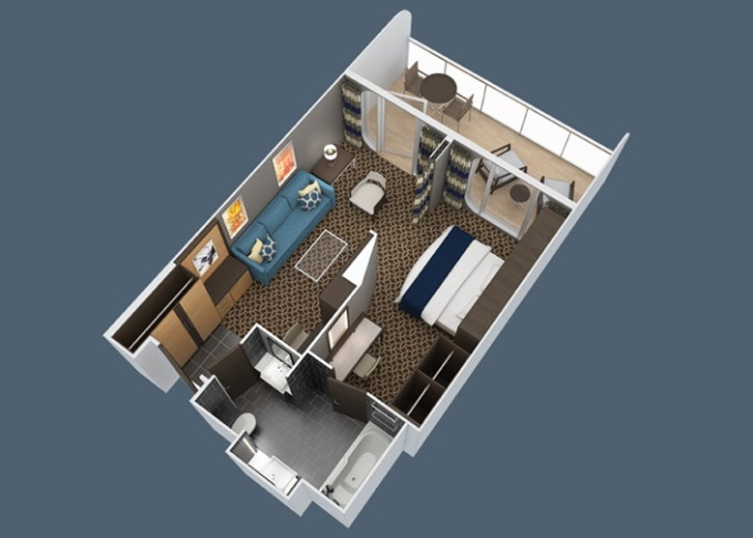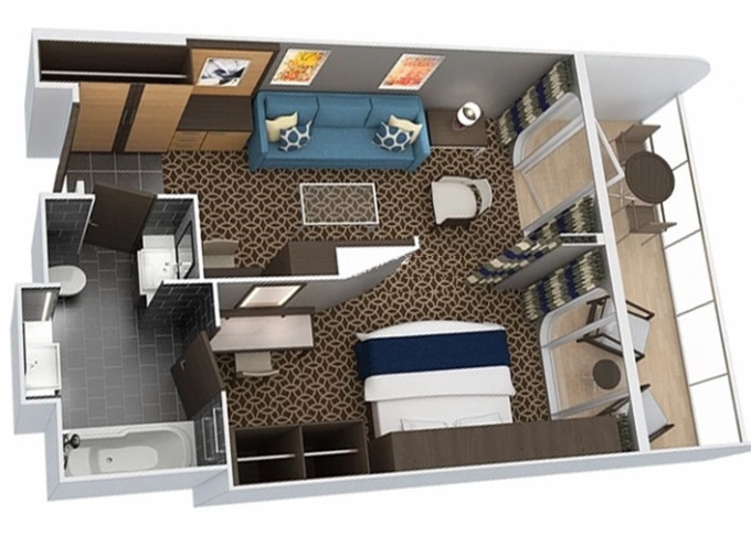 | 3U - Vnitřní kajuta s virtuálním balkonem 15 m². Obrazovka velkosti balkonových dverí s promítaným výhledem. 7. až 12. paluba. Max 2-4 osoby. | 84 057 Kč 28 019 Kč za osobu | ||