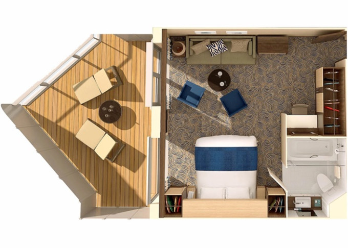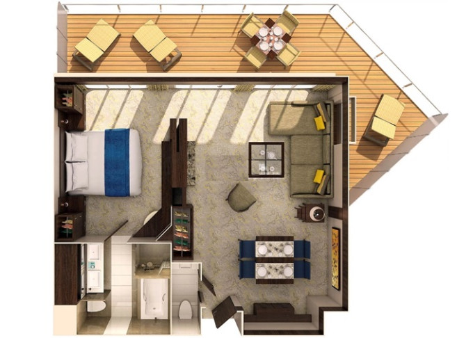 | J1 - Junior Suite s velkým balkonem 25 m² / balkon 15 m². Výhody Royal Suite Class. 6. až 13. paluba. Max 4-5 osob. | 174 682 Kč 174 682 Kč za osobu | ||