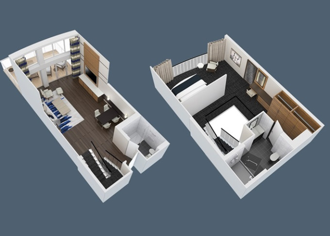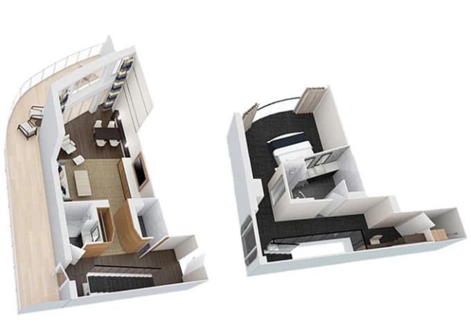 | OL - Owner Loft Suite s balkonem 90 m² / balkon 46 m². 2-podlažní apartmán. Výhody Royal Suite Class. 8. paluba. Max 4 osoby. | 565 825 Kč 565 825 Kč za osobu | ||