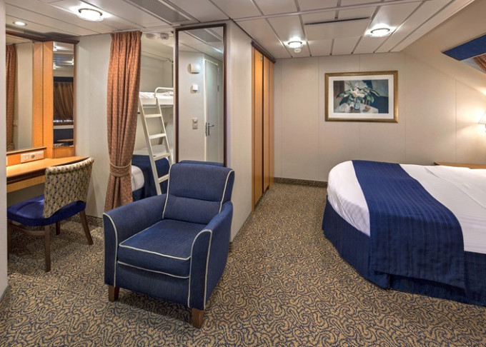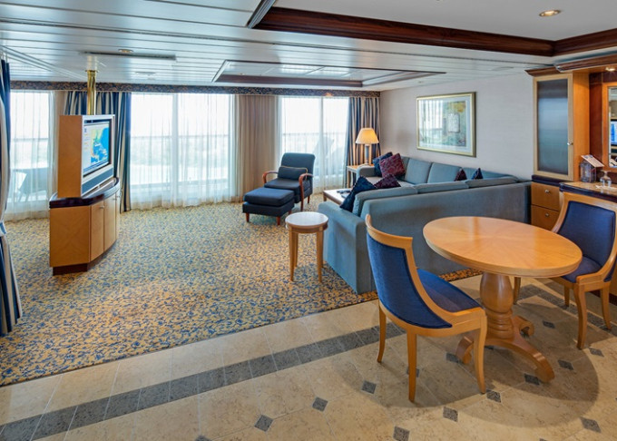 | VT - Ocean View Suite / 2 ložnice (bez balkonu) 54 m². Velké neotevíratelné okna. Výhody Royal Suite Class. 10. paluba. Max 8 osob. | 150 634 Kč 150 634 Kč za osobu | ||