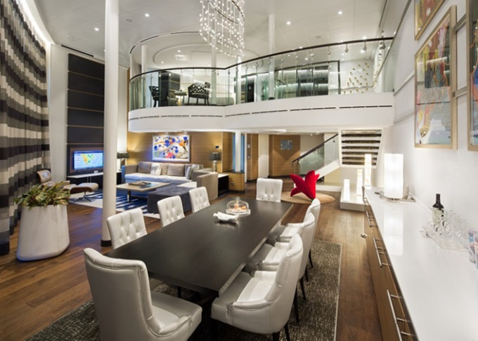 | RL - Royal Loft Suite s balkonem 152 m² / balkon 51 m². Výhody Royal Suite Class. 2-podlažní apartmán. 8. paluba. Max 6 osob. | 829 783 Kč 276 594 Kč za osobu | ||