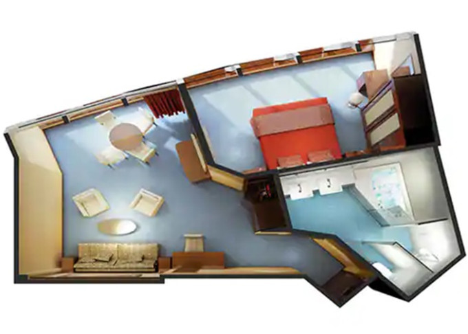 | S6 - Deluxe Owners Suite 62-68 m². Celoplošné neotevíratelné okna. Výhody Suite.12. paluba - vpředu. Max 4-6 osob. | 83 625 Kč 41 812 Kč za osobu | ||