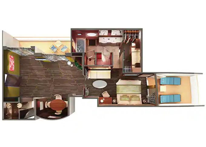 | S2 - Deluxe Owner Suite 54 m² / balkon 14 m². Výhody Suite. 10. paluba - vpředu. Max 4 osoby. | 122 090 Kč 61 045 Kč za osobu | ||